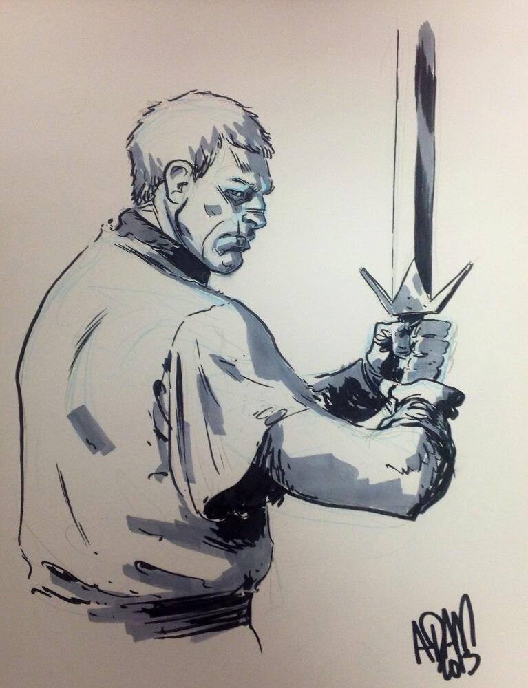 Lately I've been snapping photos of drawings and pages as I draw them and throwing everything up on Twitter. Hopefully people enjoy seeing a process. Mostly it's to let those counting on me to finish Teuton that I'm not dicking around.